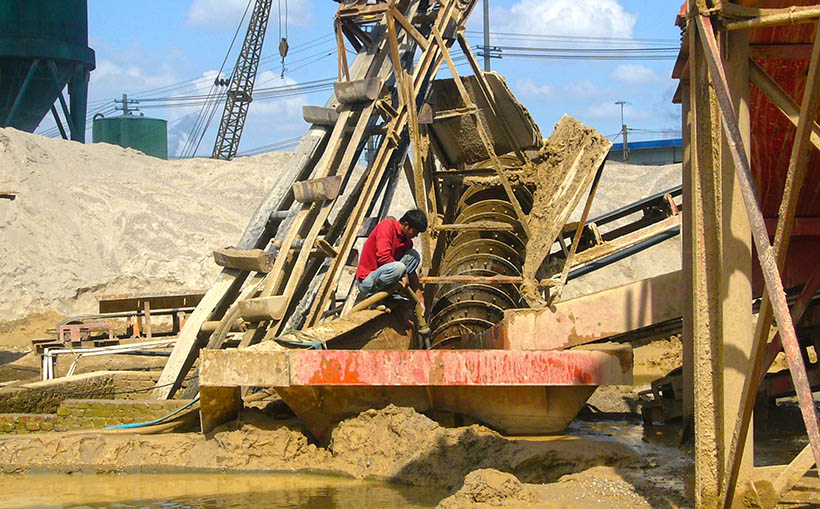 螺旋式洗砂機(jī)的工作原理,及洗砂流程如下:
